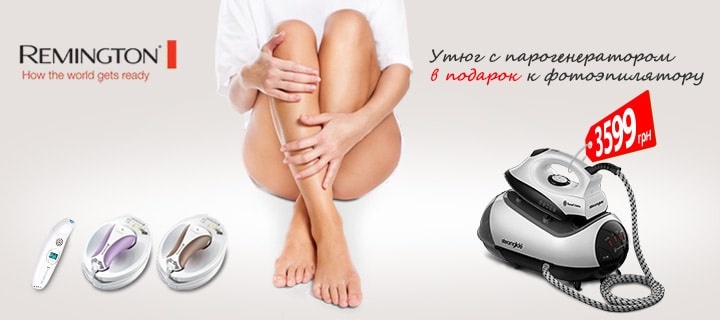 Описание акции: | К фотоэпиляторам Remington утюг с парогенератором в подарок!![]() | ||||||