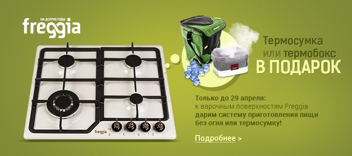 Описание акции: | Купи варочную поверхность Freggia — получи систему приготовления пищи без огня или термосумку в подарок!![]() | ||||||