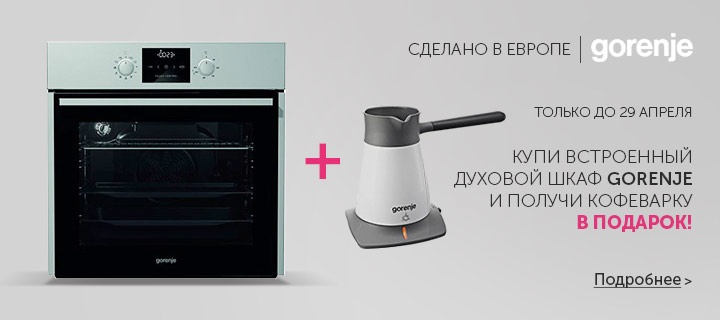 Описание акции: | Купи встроенный духовой шкаф Gorenje — получи кофеварку в подарок!![]() | ||||||