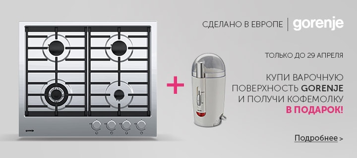 Описание акции: | Купи варочную поверхность Gorenje — получи кофемолку в подарок!![]() | ||||||