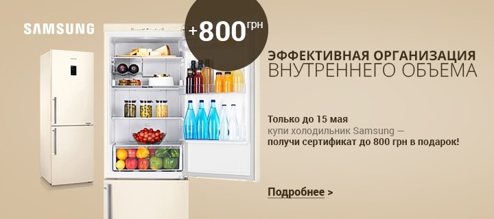 Описание акции: | Купи холодильникам Samsung — получи сертификаты до 800 грн в подарок!![]() | ||||||