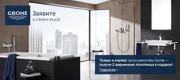 Описание акции: | Покупай смесители Grohe — Только в апреле: купи cмеситель Grohe — получай 2 фирменных полотенца в подарок!![]() | ||||||