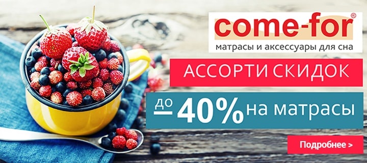 Описание акции: | Скидки до 40% на матрасы Come-For!![]() | ||||||