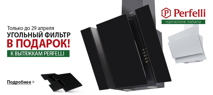Описание акции: | Купи вытяжку Perfelli — получи угольный фильтр в подарок!![]() | ||||||