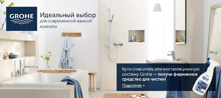 Описание акции: | Купи cмеситель или инсталляционную систему Grohe — получи чистящее средство Grohclean в подарок!![]() | ||||||