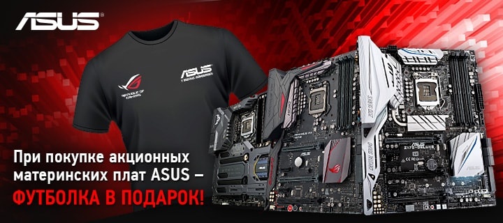 Описание акции: | Купи материнскую плату ASUS — получи фирменную футболку в подарок!![]() | ||||||