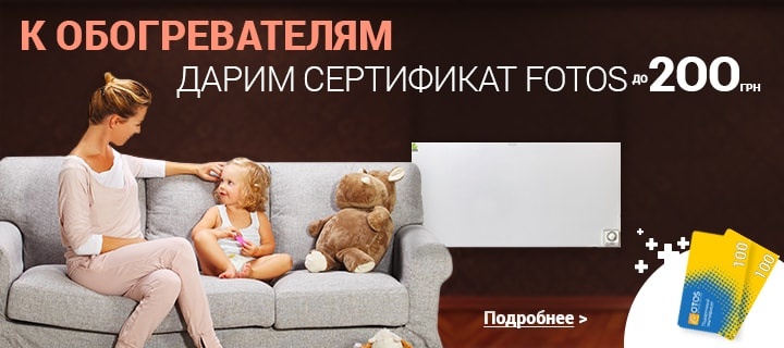 Описание акции: | Купи обогреватель — получи сертификат Fotos до 200 грн в подарок!![]() | ||||||