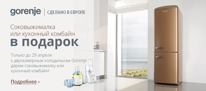 Описание акции: | Купи холодильник Gorenje — получи кухонный комбайн или соковыжималку в подарок!![]() | ||||||