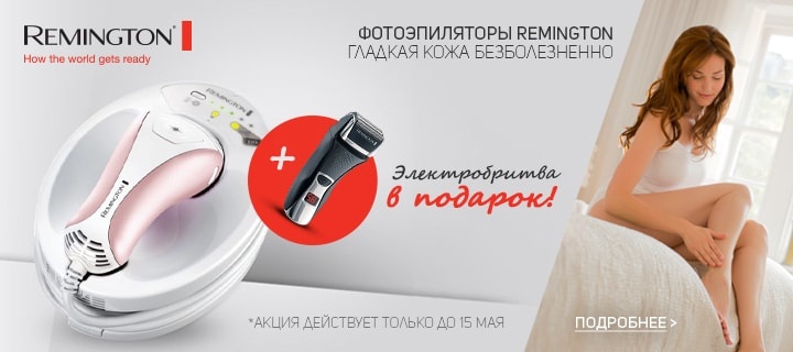 Описание акции: | Купи фотоэпилятор Remington — получи электробритву Remington в подарок!![]() | ||||||