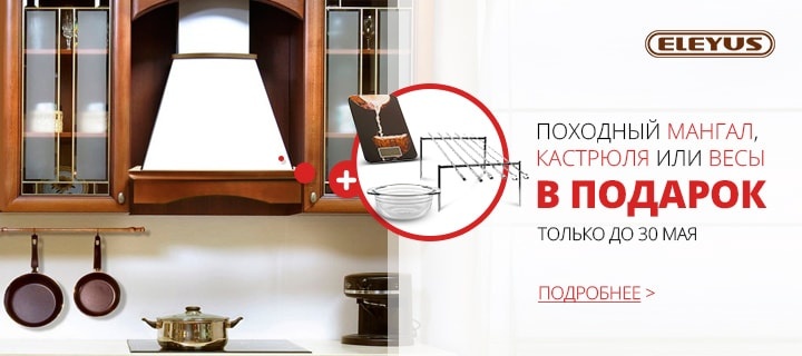 Описание акции: | Купи вытяжку Eleyus — получи походный мангал, кастрюлю или весы в подарок!![]() | ||||||