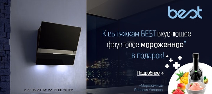 Описание акции: | Купи вытяжку BEST — получи мороженицу в подарок!![]() | ||||||