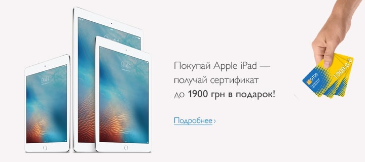 Описание акции: | Покупай Apple iPad — получай сертификат до 1 900 грн в подарок!![]() | ||||||