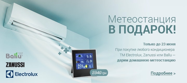 Описание акции: | Купи кондиционер Ballu, Zanussi или Electrolux — получи метеостанцию в подарок!![]() | ||||||