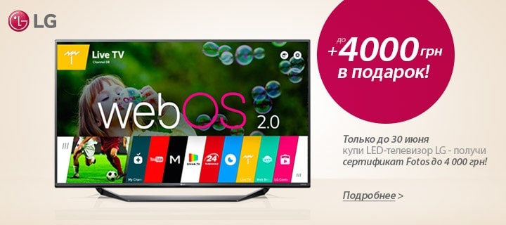 Описание акции: | — дарим сертификат Fotos на 2 000 грн! — дарим настройку Smart TV от Support.ua — дарим до 6 месяцев бесплатного просмотра фильмов на Megogo и пакет ТВ от Divan.tv![]() | ||||||