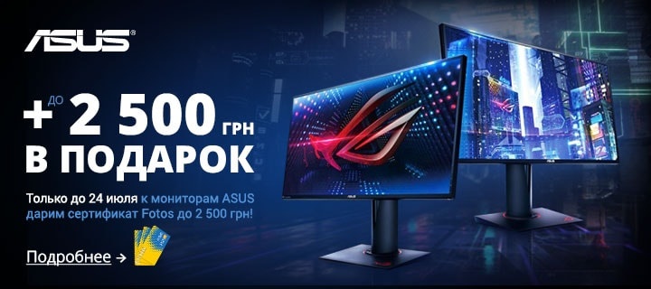 Описание акции: | Купи монитор ASUS — получи сертификат Fotos до 2500 грн в подарок!![]() | ||||||