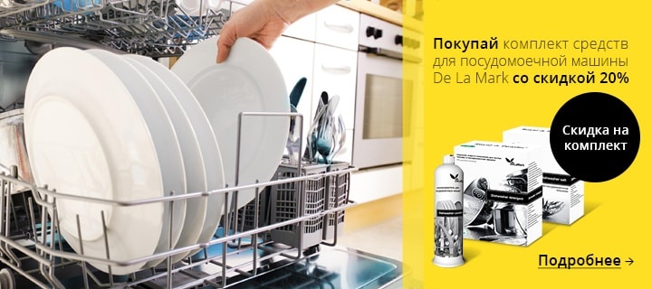 Описание акции: | Покупай комплект средств для посудомоечной машины De La Mark со скидкой 20%![]() | ||||||
