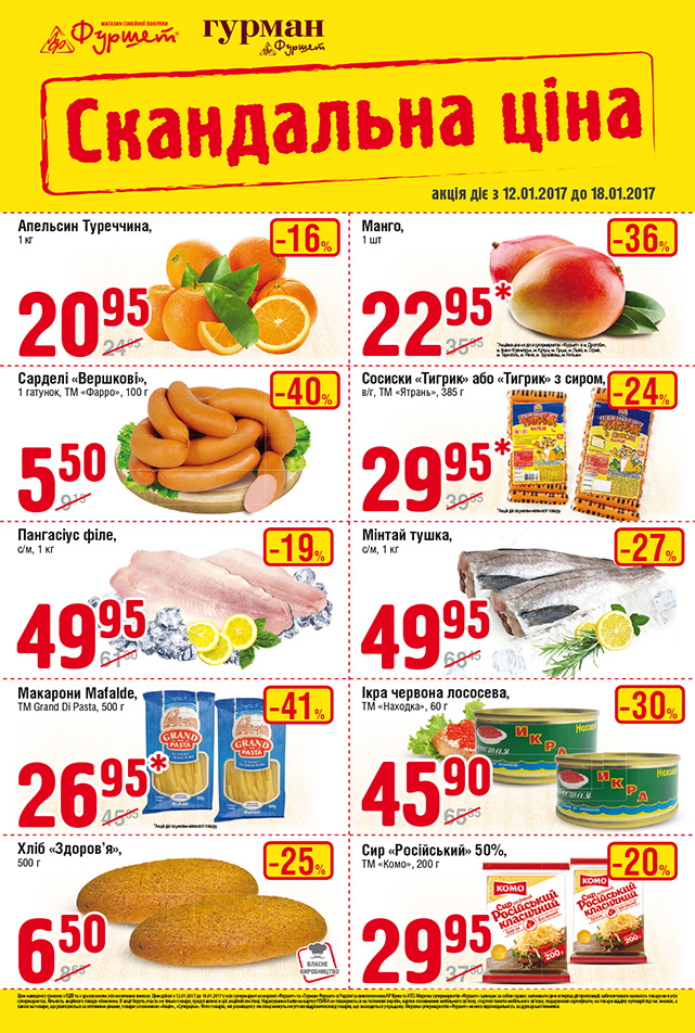| Описание акции: | Новые акционные предложения по Скандальной цене уже ждут вас. Выбирайте товары из перечня и до встречи в супермаркетах Фуршет по всей Украине! ![]() | ||||||