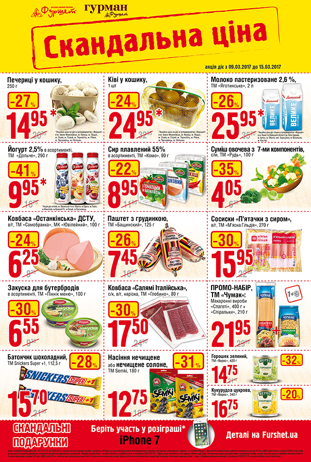 | Описание акции: | Дорогие покупатели. Новые акционные предложения по Скандальной цене уже ждут вас. Выбирайте товары из перечня и до встречи в супермаркетах Фуршет по всей Украине! ![]() | ||||||