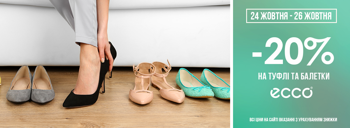 Описание акции: | На туфлі та балетки ECCO знижки 20%.![]() | |