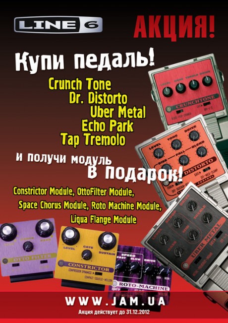 Описание акции: | При покупке педали серии TONECORE (CrunchTone, Dr.Distorto, UberMetal, EchoPark, TapTremolo) JAM.UA предлагает бесплатный подарок - модуль-эффект (Constrictor Module, Otto Filter Module, SpaceChorus Module, LiquaFlange Module, RotoMachine Module).![]() | ||||||