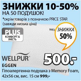 | Описание акции: | Знижки 10-50% на 50 подушок![]() | ||||||