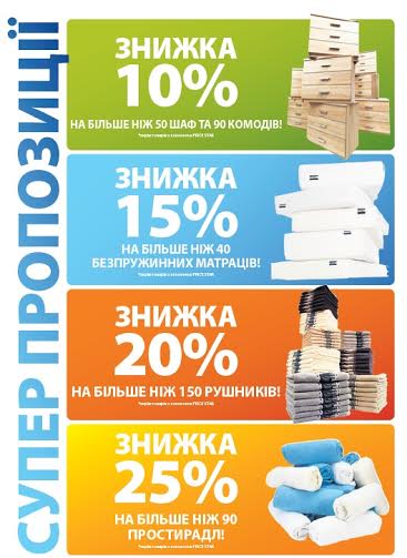 Список магазинов: | JYSK (Юск), УНИВЕРМАГ УКРАИНА, Аркадия ТЦ (бывший ТЦ Материк), Аркадия на Осокорках ТЦ (бывший ТЦ Материк), КВАДРАТ на Перова ТРЦ, Sky Mall ТРЦ | ||||||