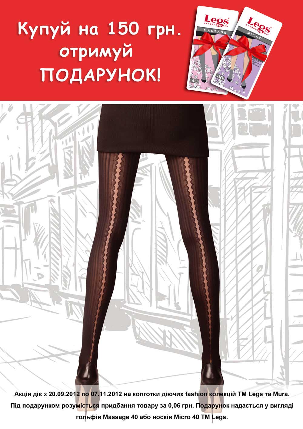 Описание акции: | Будь модною і стильною та отримуй подарунки! Акція на колготки діючих fashion колекцій TM Legs та Mura. ![]() | ||||||
