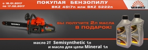 | Описание акции: | ![]() В подарок 2 литра масла при покупке бензопил Vitals Получите 2л масла Vitals Semisynthetic (масло для двухтактных двигателей) и Vitals Mineral (масло для пильных цепей) в подарок при покупке бензопил Vitals BKZ 4517n и Vitals BKZ 5222n. Количество акционных предложений ограничено. Успейте воспользоваться акцией! | |