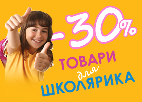 Описание акции: | Знижка -30% на товари для школярів! Запрошуємо Вас до магазинів "КОСМО" в усіх регіонах України, щоб вигідно придбати товари для своїх школярів - адже саме в цей час "шкільна" продукція в "КОСМО" коштує на 30% дешевше від її звичайної роздрібної ціни! ![]() | ||||||
