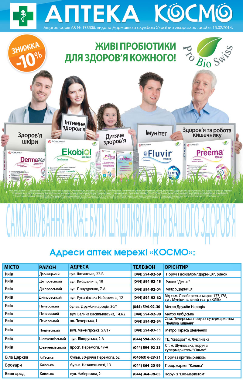 Описание акции: | ЗНИЖКА -10% НА ПРОБІОТИКИ ВІД ТМ PRO BIO SWISS.![]() | ||||||