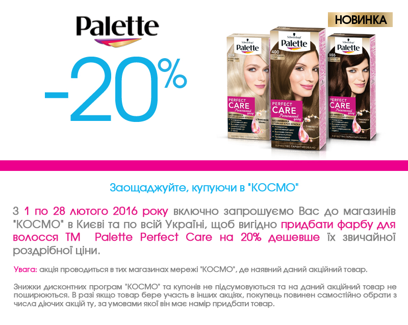 Описание акции: | ФАРБА ДЛЯ ВОЛОССЯ ТМ PALETTE PERFECT CARE ЗІ ЗНИЖКОЮ -20%!![]() | ||||||