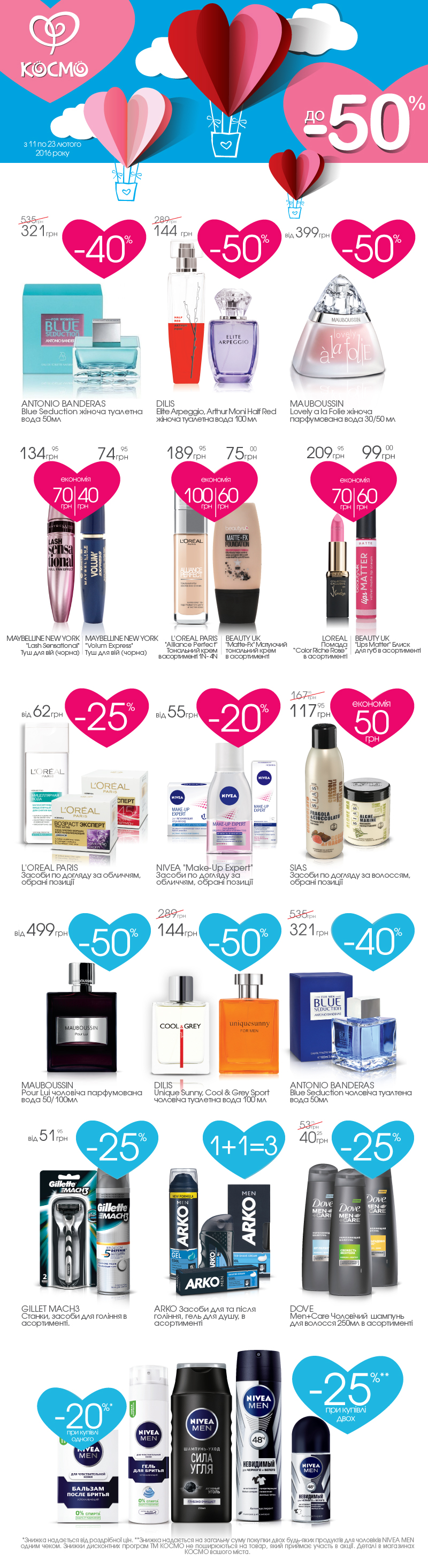 Описание акции: | ПОДАРУНКОВІ ЗНИЖКИ до 50% В "КОСМО"!![]() | ||||||