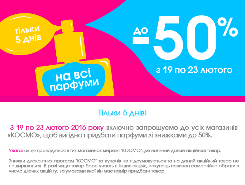 Описание акции: | ЛИШЕ 5 ДНІВ: ЗНИЖКА ДО -50% НА ВСІ ПАРФУМИ!![]() | ||||||