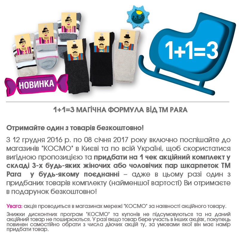 | Описание акции: | 1+1=3 пари шкарпеток ТМ PARA![]() | ||||||