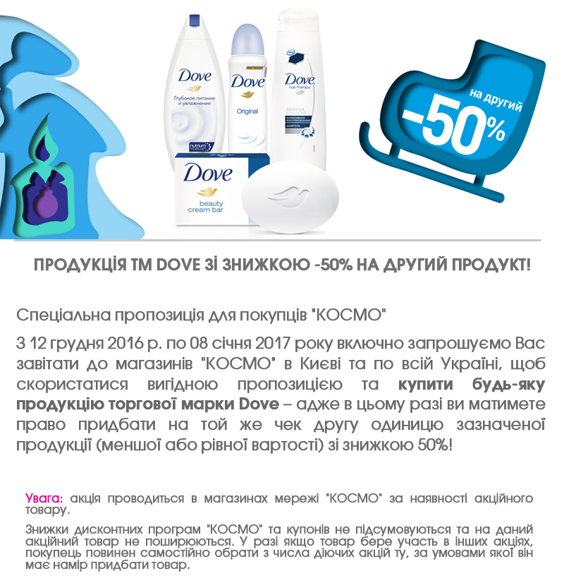 | Описание акции: | Другий продукт ТМ DOVE зі знижкою - 50%!![]() | ||||||