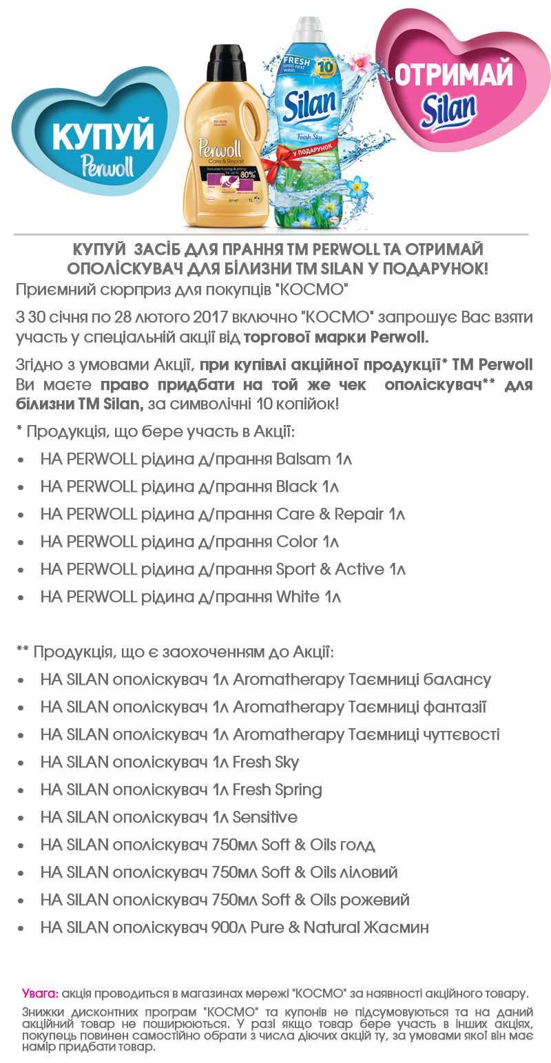 | Описание акции: | Ополіскувач для білизни ТМ SILAN у подарунок![]() | ||||||