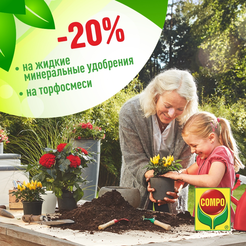 | Описание акции: | ![]() Март – лучшее время для открытия посадочного сезона любимых растений. Делайте выгодные покупки со скидкой -20% на торфосмеси и жидкие удобрения Compo! Оформляйте заказ в бутике Lechuza ТРЦ Dream Town 2 (1-й этаж, атриум Англия) | ||||||
