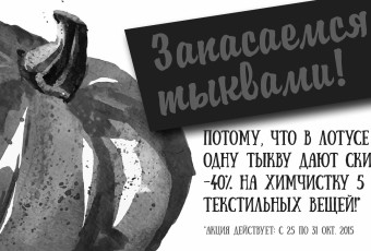 Вы приносите нам тыкву – мы Вам даем -40% на химчистку 5-ти текстильных вещей.