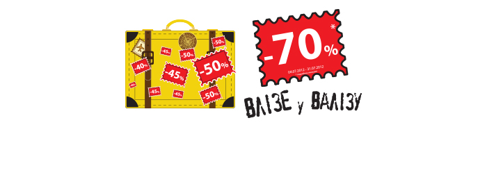 Описание акции: | ВЛІЗЕ у ВАЛІЗУ Час приємною метушні. Навколо багато сумок і валіз і це може означати тільки одне! Настав час відпусток. А знаєте, що найголовніше в цей період?! Нічого не забути! Від чого прямолінійно залежить Ваш позитивний настрій) ![]() Ми все врахували. Побоювання тільки одне, що для взуття прийдеться завести окрему сумку! В фірмових магазинах Luciano Carvari: -40% -45% -50% на першу пару і рівно -70% на другу! до -50% на сумки та аксесуари Додаткові умови акції: - Подарункові сертифікати використовуються. - Бонусы накопичуються, але не отоварюються. - Знижка по ДК не діє. В акції не приймають участь: - Засоби догляду за взуттям. - Шкарпетки. Шукайте валізу побільше ;) Детальні умови акції дізнавайся за номером гарячої лінії 0 800 30 55 54, або у продавця в магазині. | ||||||