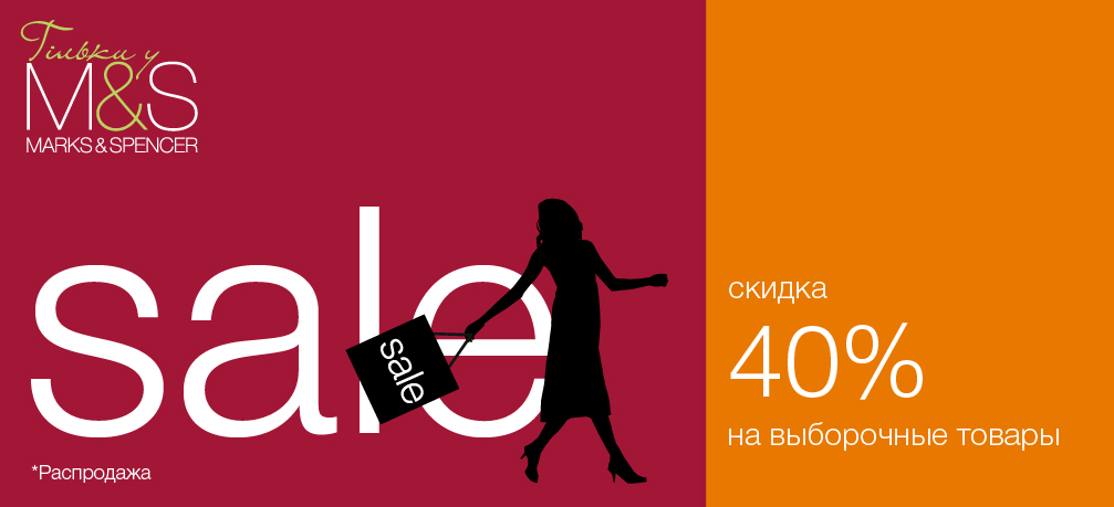 Описание акции: | Осенняя распродажа в Marks & Spencer! С 24 октября с.г. в магазине Marks & Spencer началась осенняя распродажа. Скидка 40% на выборочные товары. ![]() | ||||||