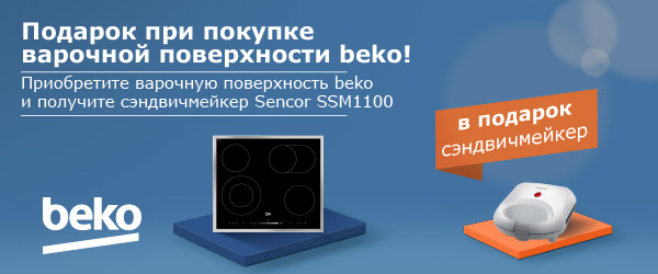 | Описание акции: | При покупке акционной варочной поверхности Beko подарок cэндвичмейкер Sencor SSM1100. Период провердения акции: до 8.02 или до окончания акционных товаров. ![]() | |
