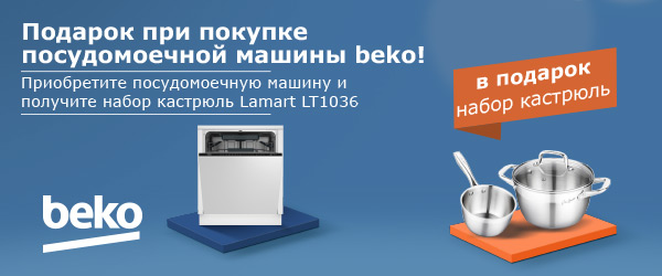 | Описание акции: | При покупке акционной посудомоечной машины Beko подарок, набор кастрюль (3 предмета 1.5+2.7л) Lamart LT1036![]() Период провердения акции: до 8.02 или до окончания акционных товаров. | |
