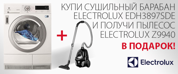 | Описание акции: | Купи сушильный барабан Electrolux EDH3897SDE и получи пылесос Electrolux Z9940 в подарок![]() Наличие подарков уточняйте у менеджеров, число подарков может быть ограничено. | |