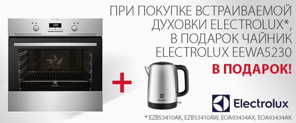 | Описание акции: | При покупке встраиваемой духовки Electrolux EZB53410AK, EZB53410AW, EOA93434AX, EOA93434AK в подарок чайник Electrolux EEWA5230![]() Наличие подарков уточняйте у менеджеров, число подарков может быть ограничено. | |