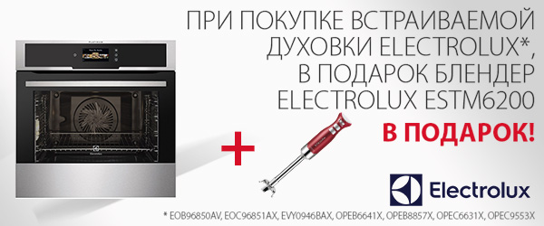 | Описание акции: | При покупке встраиваемой духовки Electrolux EOB96850AV, EOC96851AX, EVY0946BAX, OPEB6641X, OPEB8857X, OPEC6631X, OPEC9553X в подарок блендер Electrolux ESTM6200![]() Наличие подарков уточняйте у менеджеров, число подарков может быть ограничено. | |