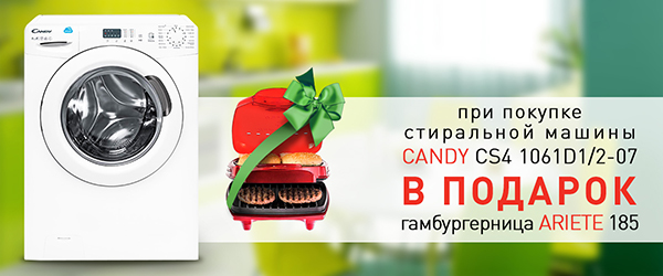 | Описание акции: | При покупке стиральной машины CANDY CS4 1061D1/2-07, полчайте в подарок прибор для гамбургеров ARIETE 185![]() Наличие подарков уточняйте у менеджеров, число подарков может быть ограничено. | |