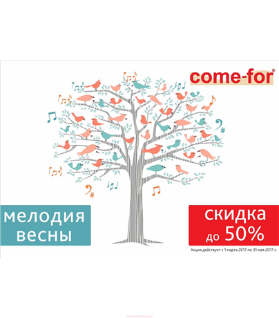 | Описание акции: | Акция Come-for "Мелодия весны" В новом акционном предложении мы увеличиваем скидку до 50% на популярную модель матраса Релакс Премиум. Также снижается цена на 40% на матрас премиум сегмента – модель Статус. Помимо этого, в предложении присутствуют 3 матраса серии Делайт со скидками от 15 до 25%, несколько беспружинных моделей матрасов и 6 моделей футонов. ![]() | ||||||