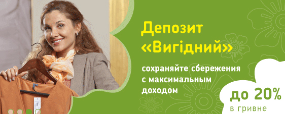 Описание акции: | У Вас есть возможность получить самые высокие проценты, разместив средства на льготном депозите «Вигідний». Это новый вид вклада со сроком размещения 12 месяцев и без возможности пополнения в течение его действия. По своему выбору Вы можете оформить депозит в трех валютаx: - гривне, - долларах США, - евро. Начисленные проценты для удобства планирования семейного бюджета будут зачисляться по Вашему желанию на текущий счет ежемесячно или после окончания срока действия депозита. Воспользуйтесь возможностью получить больше! ![]() | ||||||