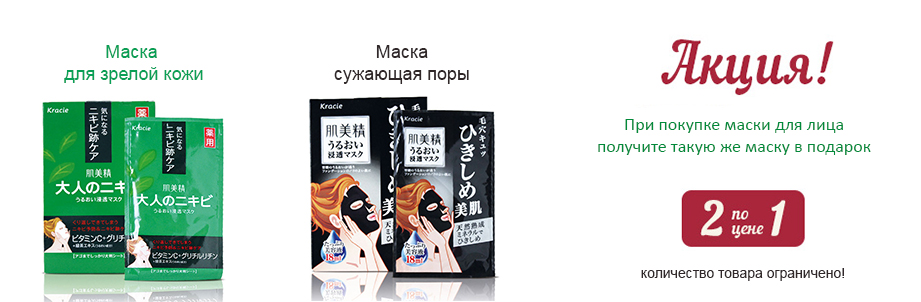 Описание акции: | Покупайте маски для лица для зрелой кожи или маску для лица, сужающую поры и получите такую же маску в подарок!![]() | |