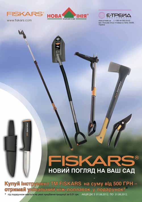 Описание акции: | Замечательная акция от ТМ «Fiskars» в гипермаркетах "Новая Линия"! "Новая Линия" совместно с ТМ "Фискарс" анонсирует замечательную акцию, суть которой заключается в том, что каждый покупатель, который приобрел акционный товар (секатор, газонные ножницы, культиватор и многое другое) на сумму от 500 грн. гарантированно получает в подарок нож-поплавок. ![]() Поспешите, количество подарков ограничено! | ||||||